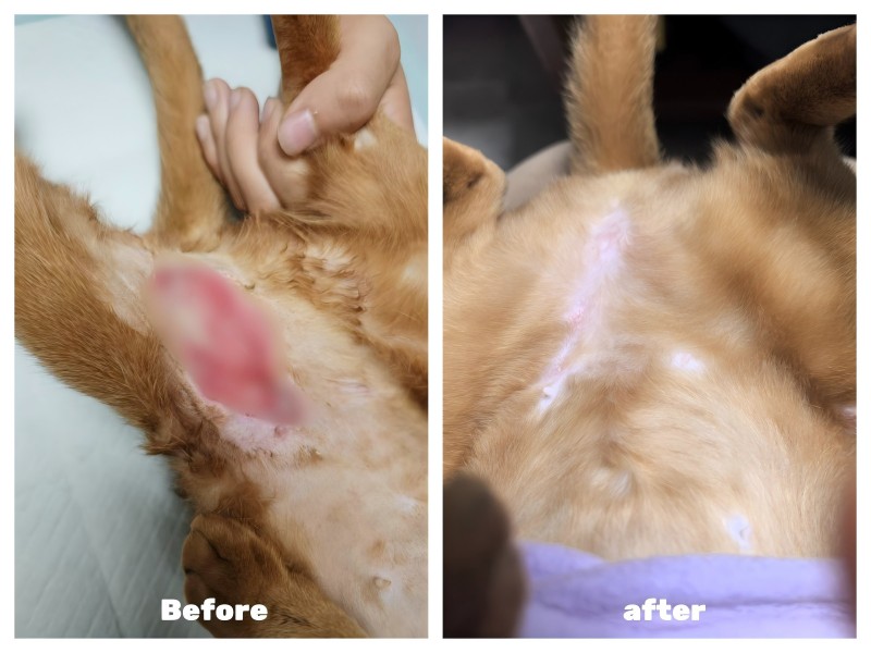 Dieser Behandlungsfall demonstriert eindrucksvoll die bemerkenswerte Wirksamkeit desVeterinärlaser VETMEDIXRehabilitationstherapie bei der Behandlung von Brustdrüsenrupturen. Nach acht Laser-Rehabilitationsbehandlungen hat sich die Wunde des erkrankten Haustieres deutlich verbessert, zeigt einen guten Heilungstrend und es ist schnell neues Granulationsgewebe gewachsen. Während des gesamten Behandlungsprozesses traten keine Nebenwirkungen auf. Diese Therapie verkürzte die Rehabilitationszeit erheblich und linderte die Schmerzen des kranken Haustieres.